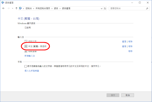 昨天剛升級到win10結果叫不出輸入法無法打中文,但卻能輸入日文,後來進入「控制台」→「語言」這裡把日文輸入法給刪除了才能用= =原本中文跟日文輸入法都有開,但好像會有衝突(WHAT?!